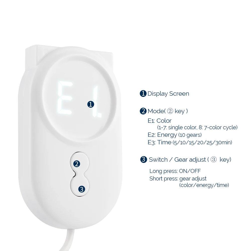 3. قم بتوصيل الطاقة ، قم بتشغيل الجهاز واختر لون الضوء والطاقة والوقت.