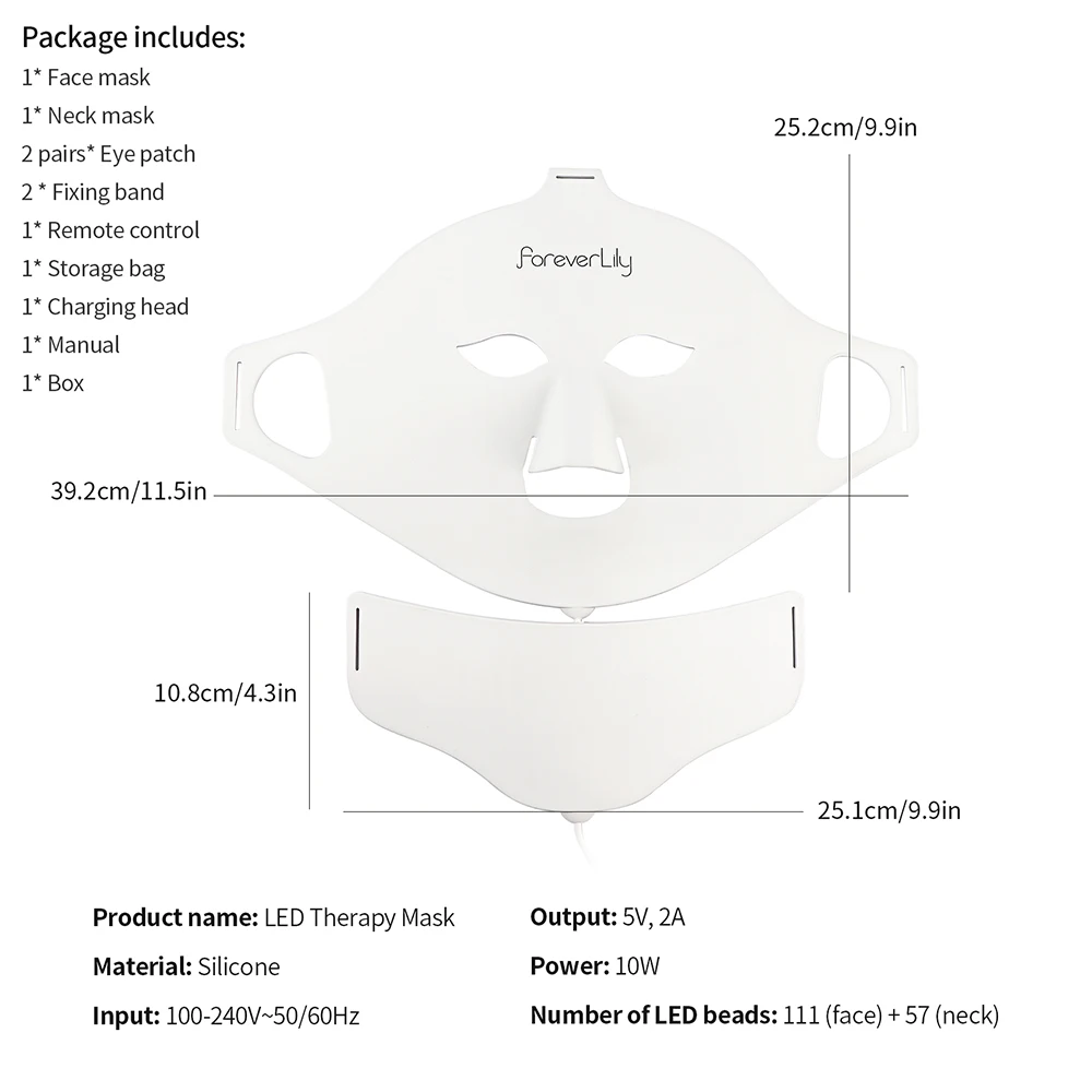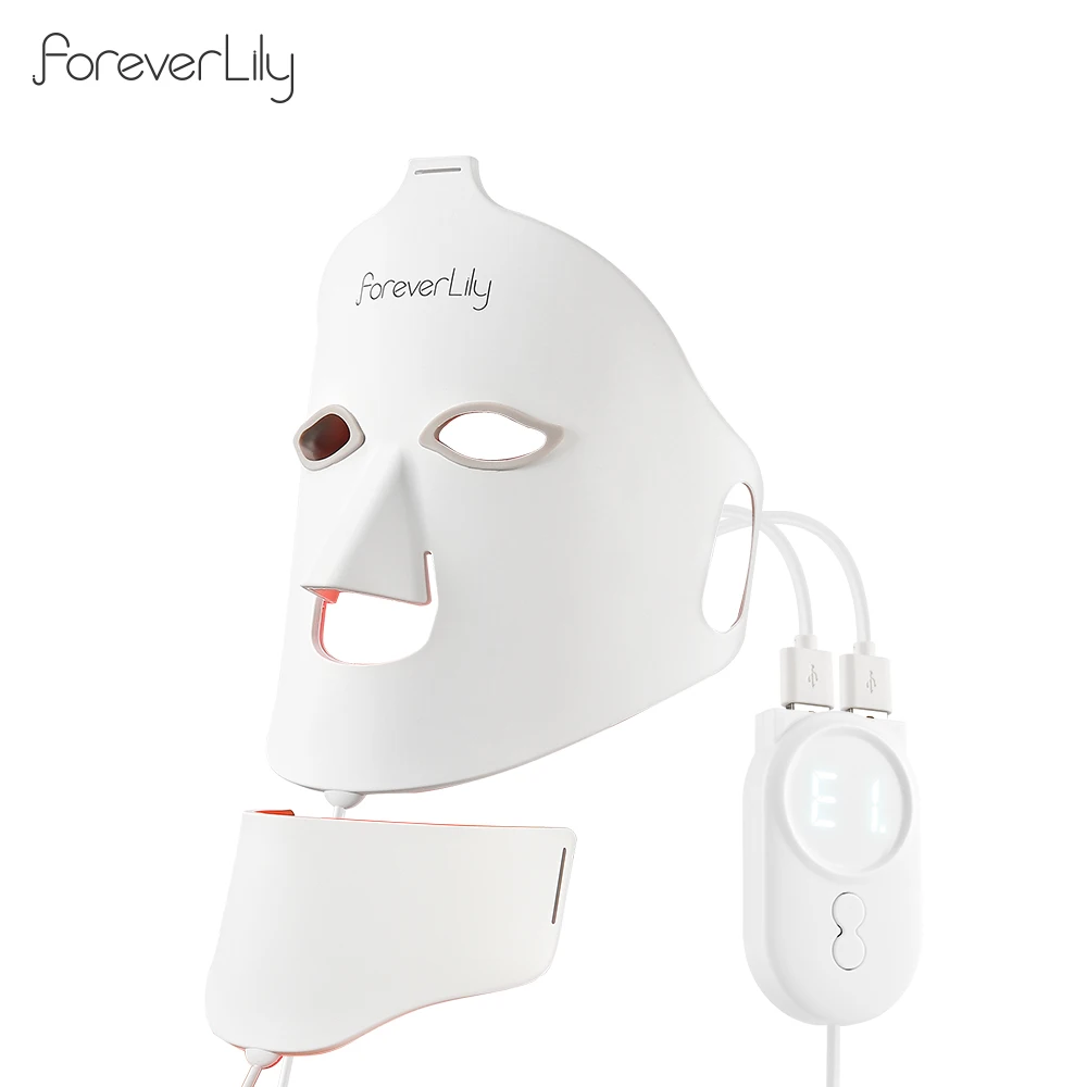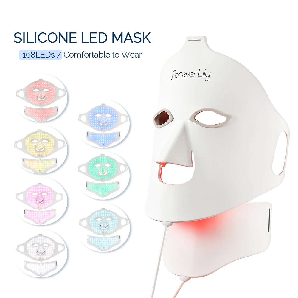 Foreverlily الوجه الرقبة سيليكون LED قناع 7 ألوان مصباح ليد الفوتون العلاج ثلاثية الأبعاد مرنة الوجه قناع تجميل الجلد سطع العناية بالبشرة